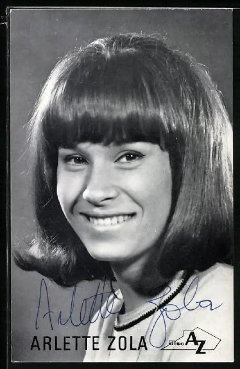 AK Musikerin Arlette Zola lächelnd im Porträt, Autograph