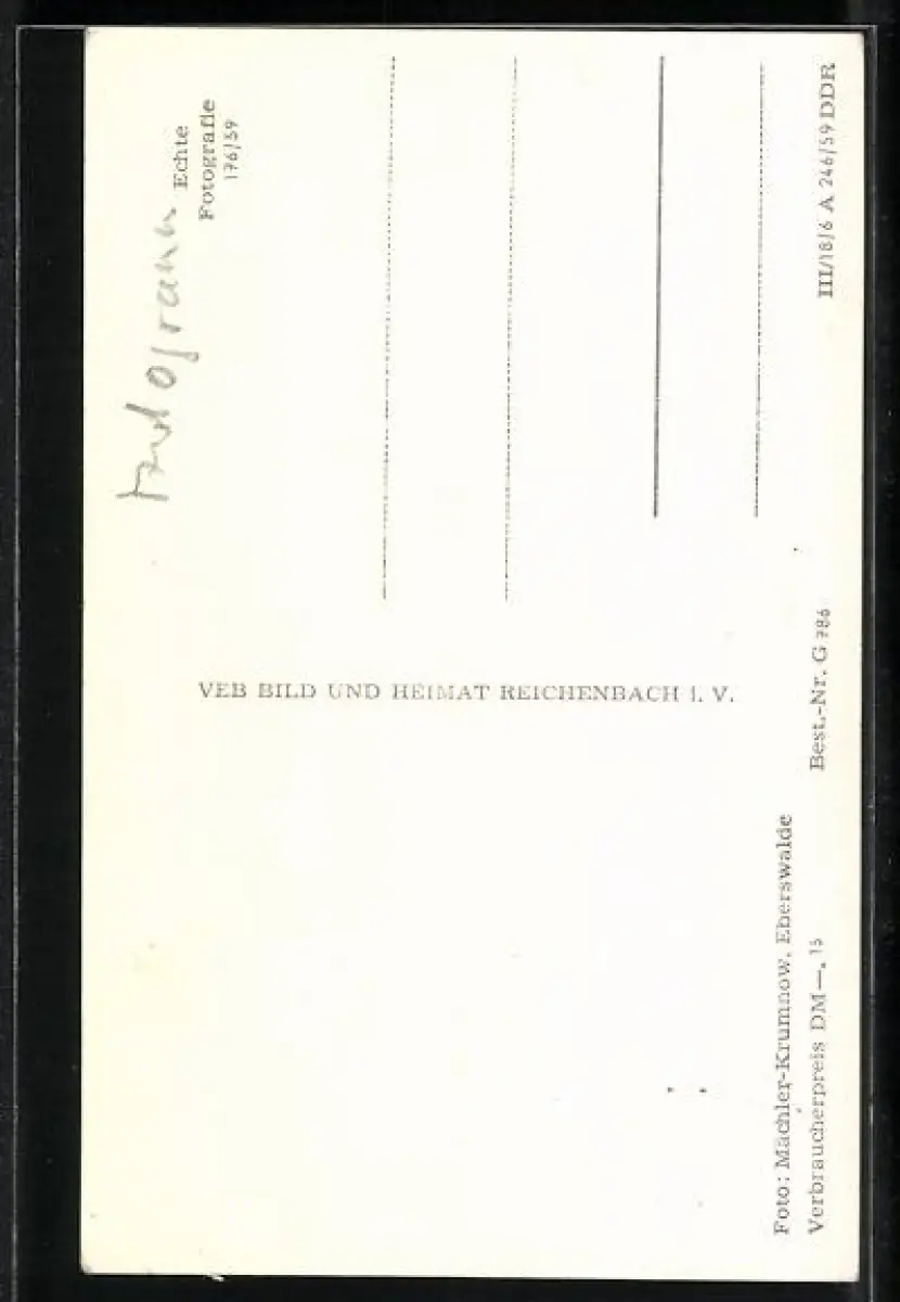 Personenbezogene Daten auf der Rückseite der Karte wurden durch blauen Textmarker unkenntlich gemacht. Die blauen Stellen sind auf die Vorderseite durchgeweicht und wirken sich negativ auf das Postkartenfoto aus