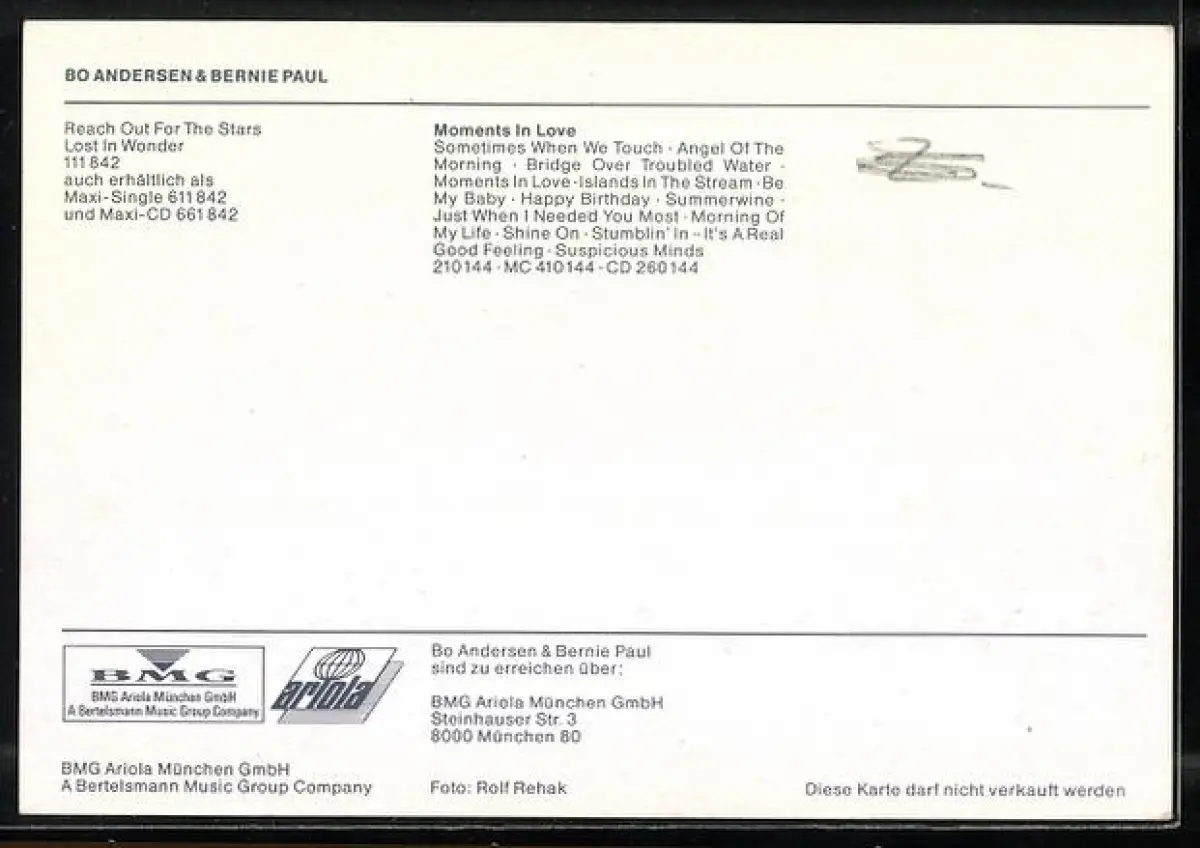 AK Musikerin Bo Andersen und Bernie Paul, Autograph