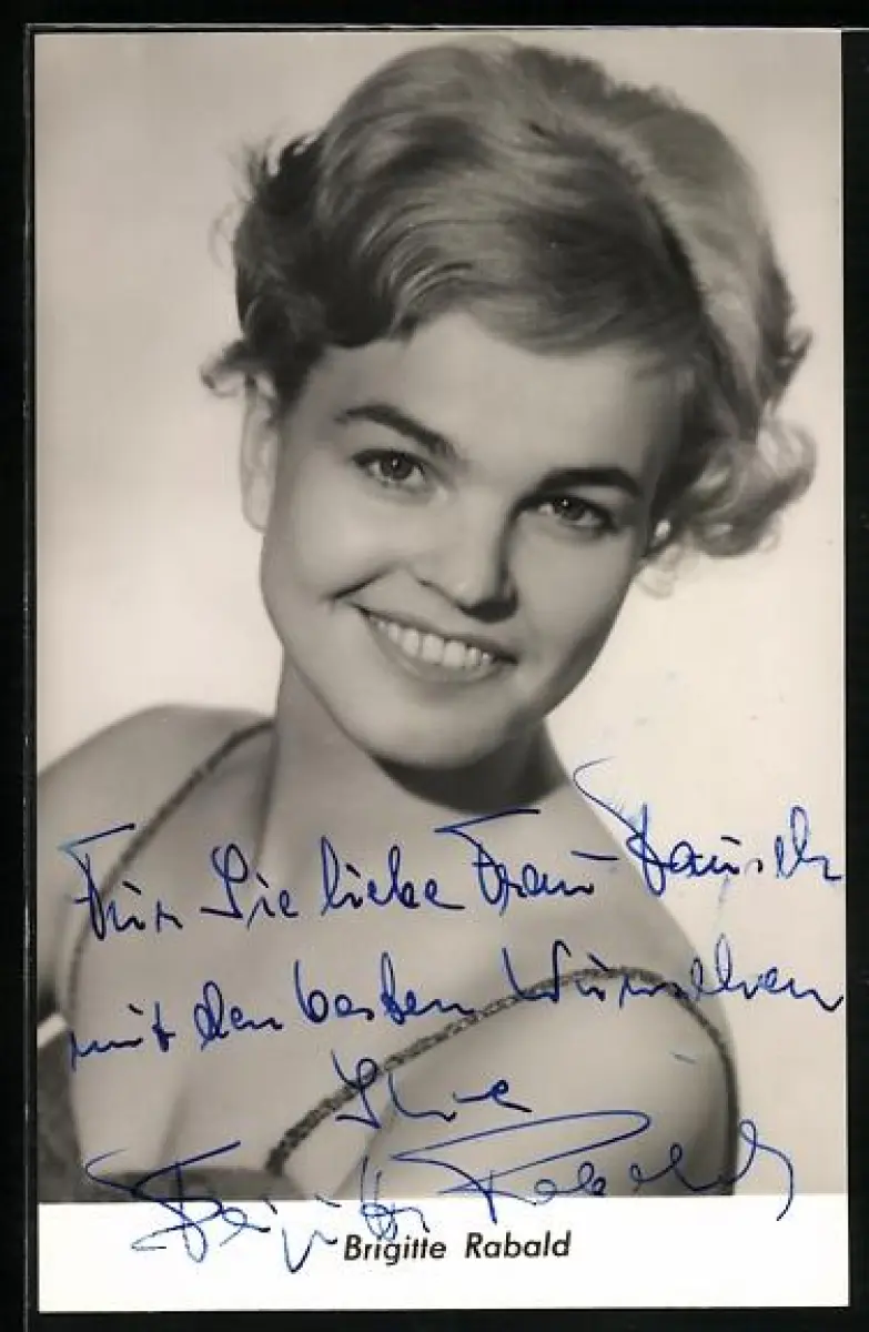 AK Musikerin Brigitte Rabald in die Kamera lächelnd, Autograph