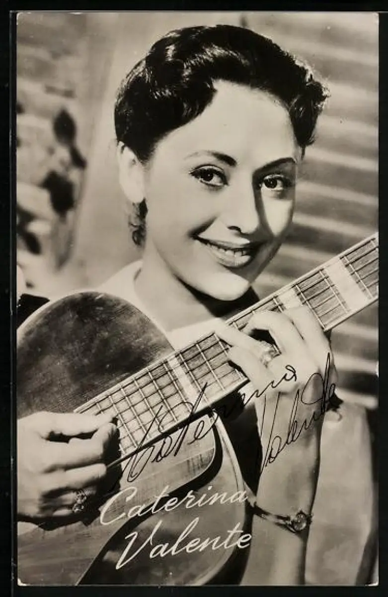 AK Musikerin Catrina Valente spielt auf Gittare, Autograph