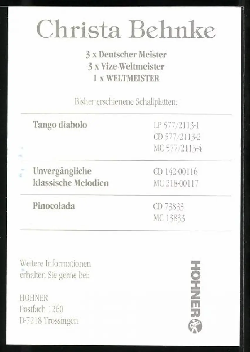 AK Musikerin Christa Behnke mit Akkordeon, Autograph