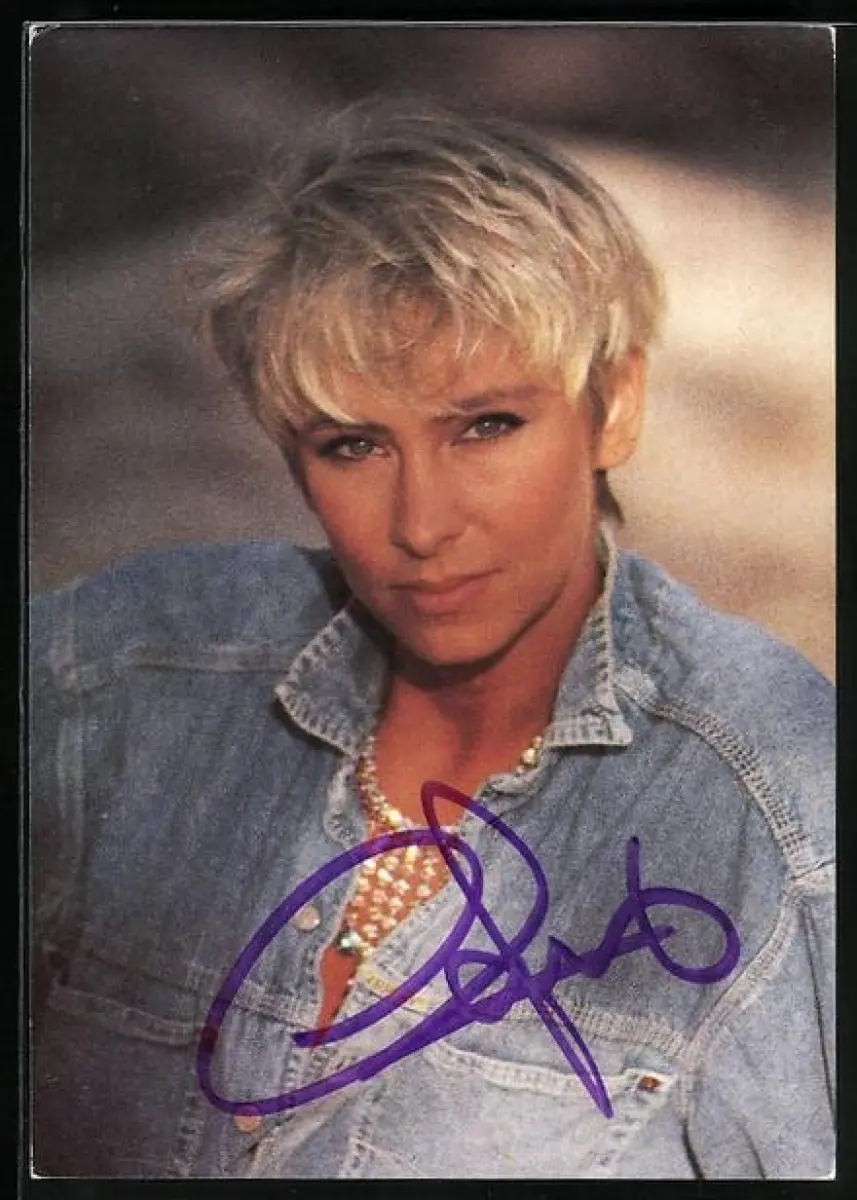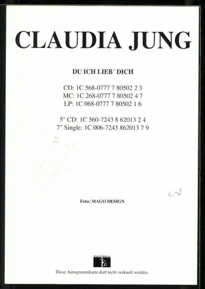 AK Musikerin Claudia Jung skeptisch schauend, Autograph
