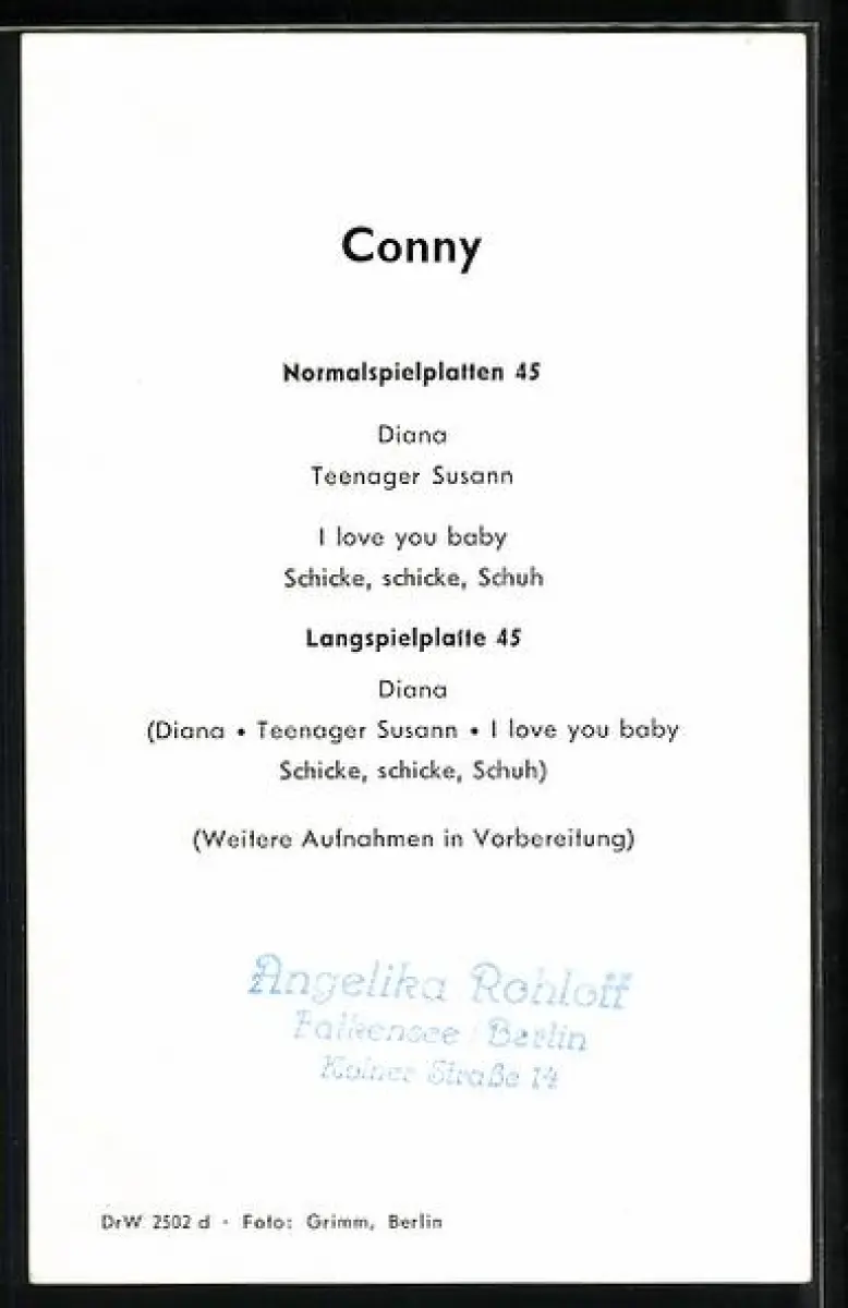 AK Musikerin Conny Froboess in die Kamera lächelnd, Autograph