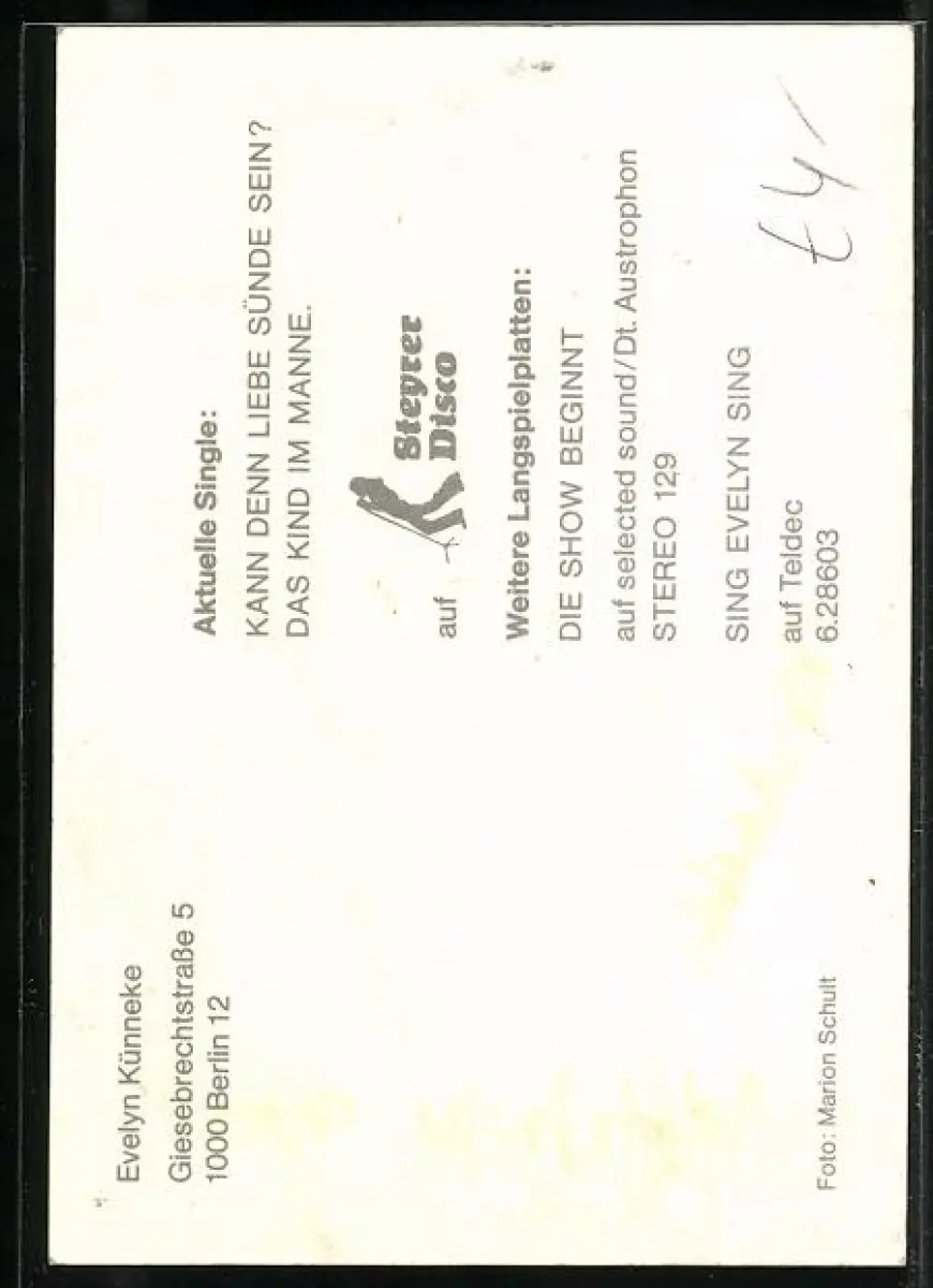 AK Musikerin Evelyn Künnecke mit Zylinder, Autograph
