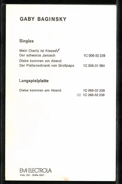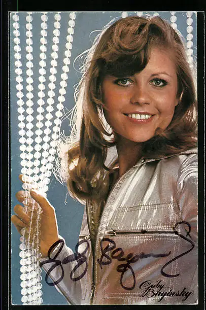 AK Musikerin Gabi Baginsky in silberner Jacke, Autograph