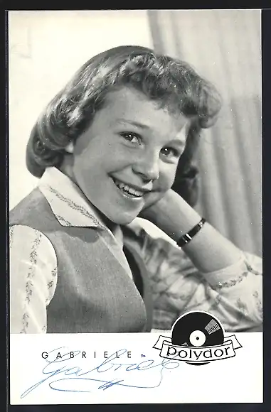 AK Musikerin Gabriele mit fröhlichem Lächeln, mit Autograph