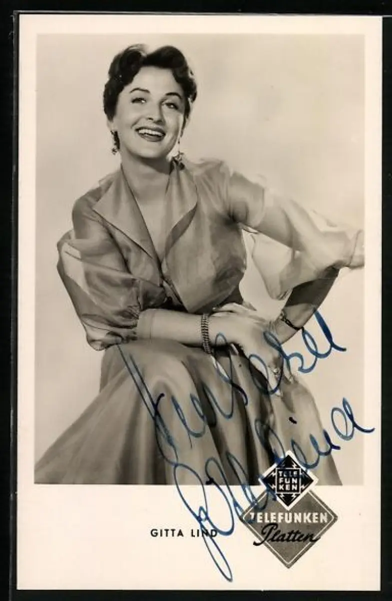 AK Musikerin Gitta Lind lächelnd im Porträt, Autograph
