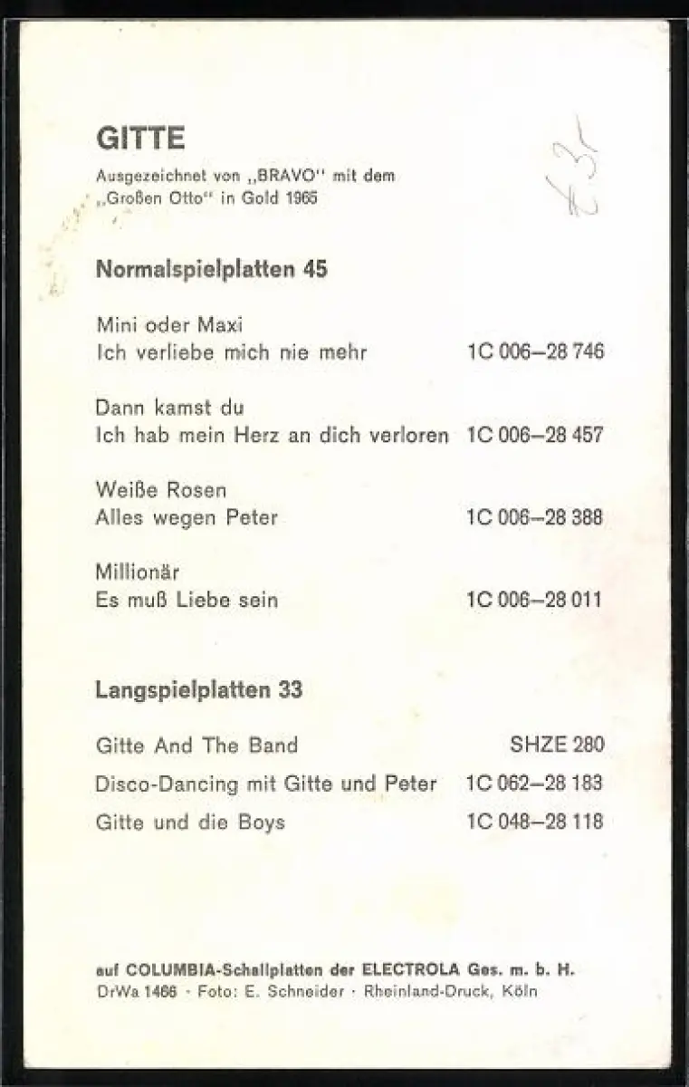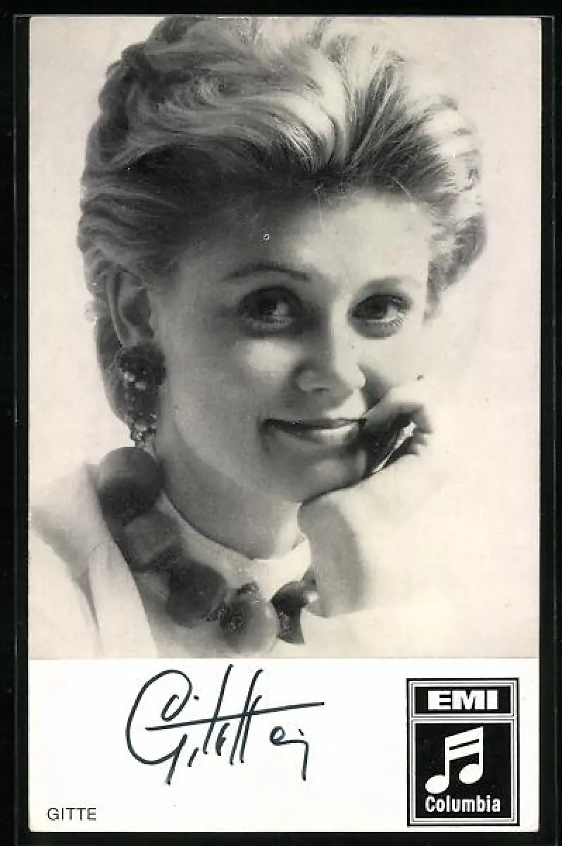 AK Musikerin Gitte mit grosser Halskette schaut in die Kamera, Autograph