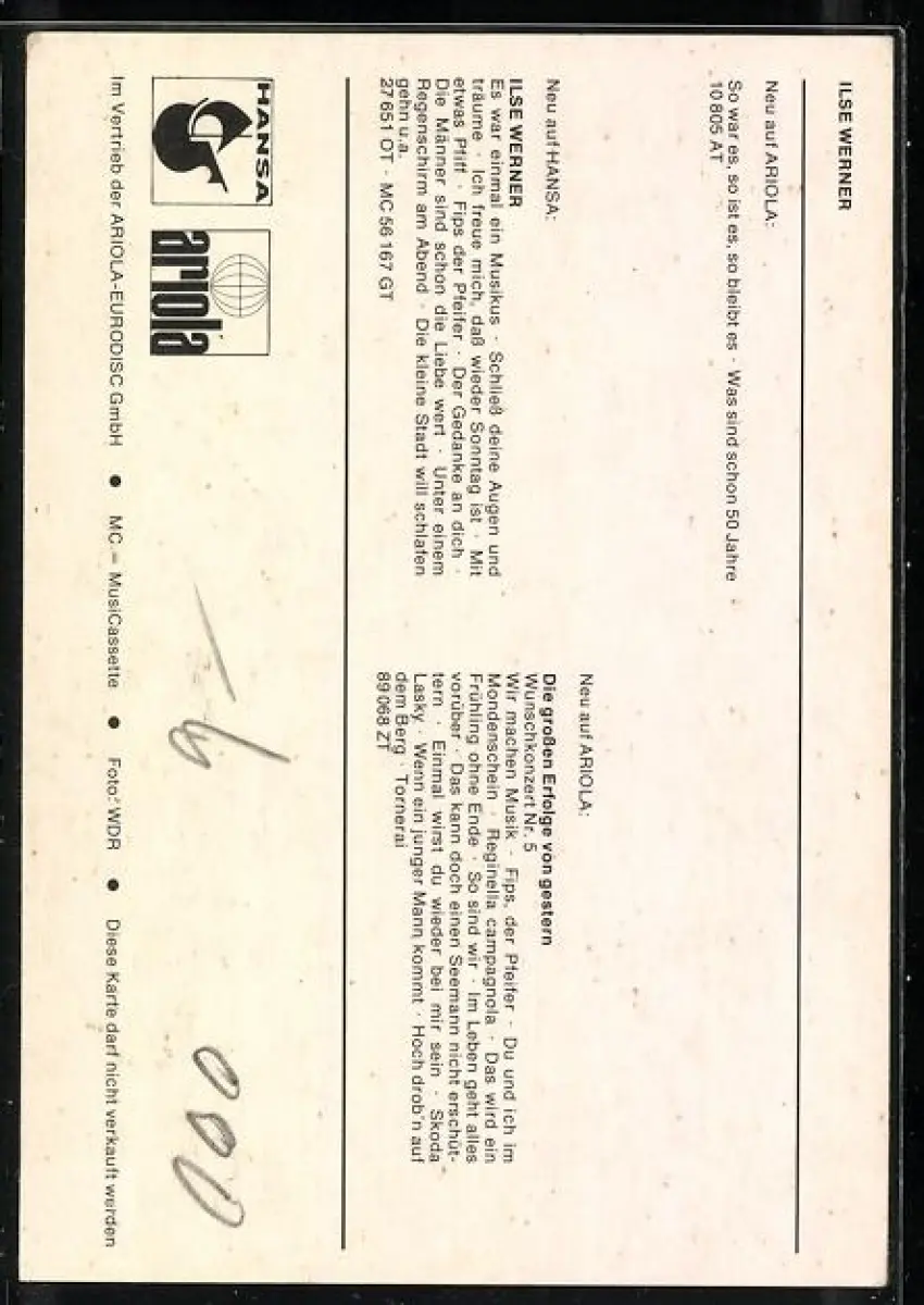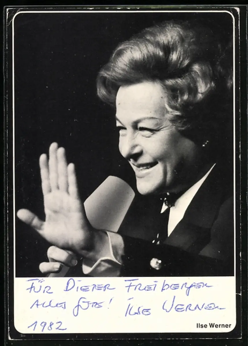 AK Musikerin Ilse Werner lächelnd im Porträt, Autograph