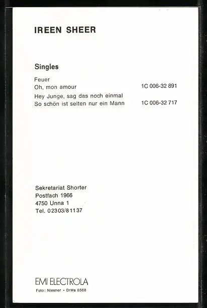 AK Musikerin Ireen Sheer sitzt in einer Hängematte, Autograph