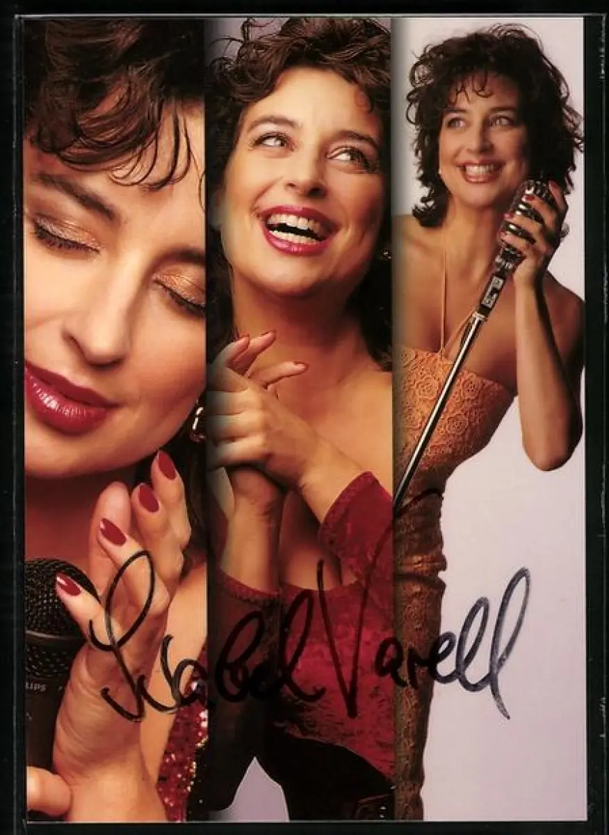 AK Musikerin Isabel Varell lächelnd im Porträt, Autograph