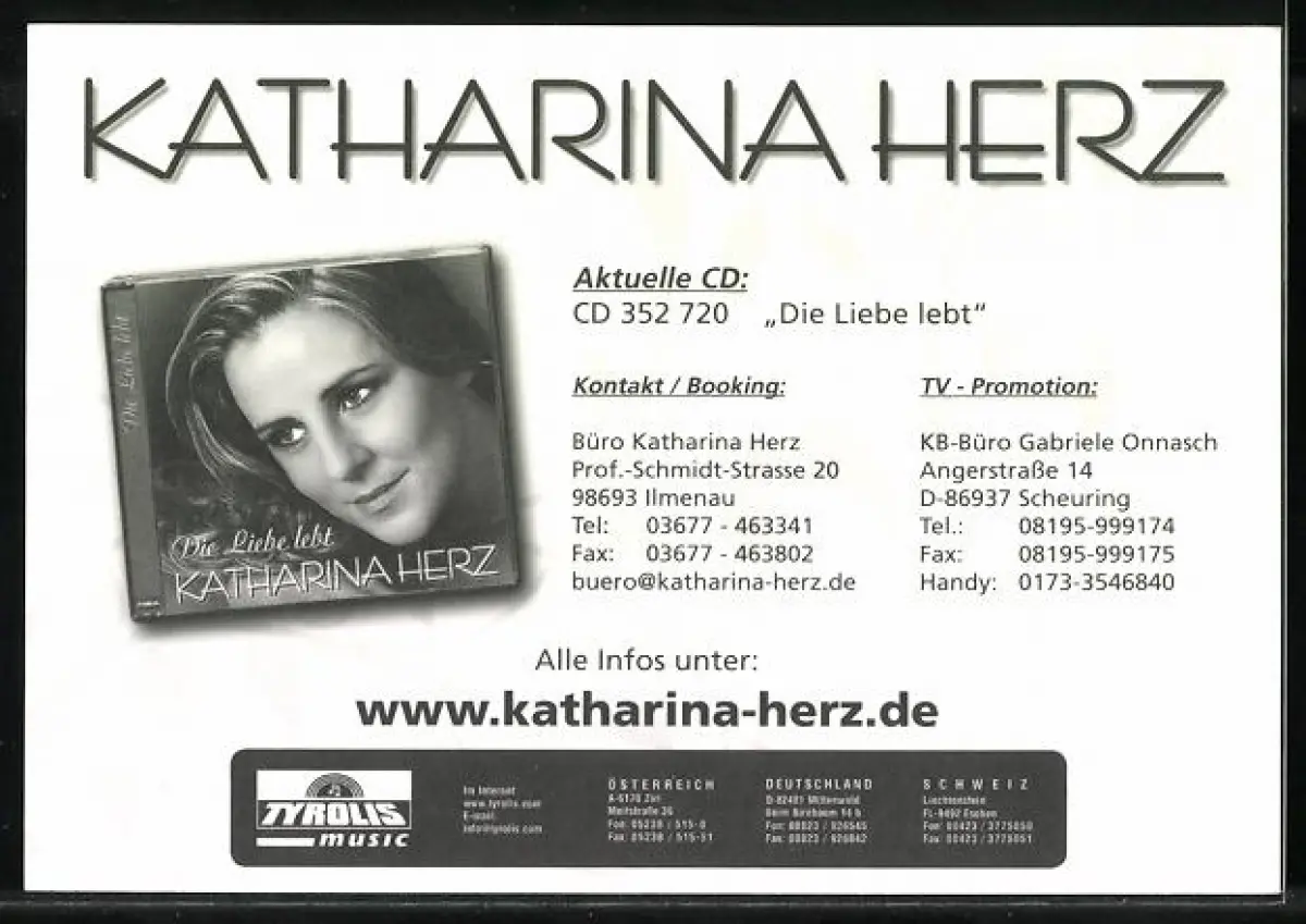 AK Musikerin Katharina Herz vor lilanem Hintergrund, Autograph