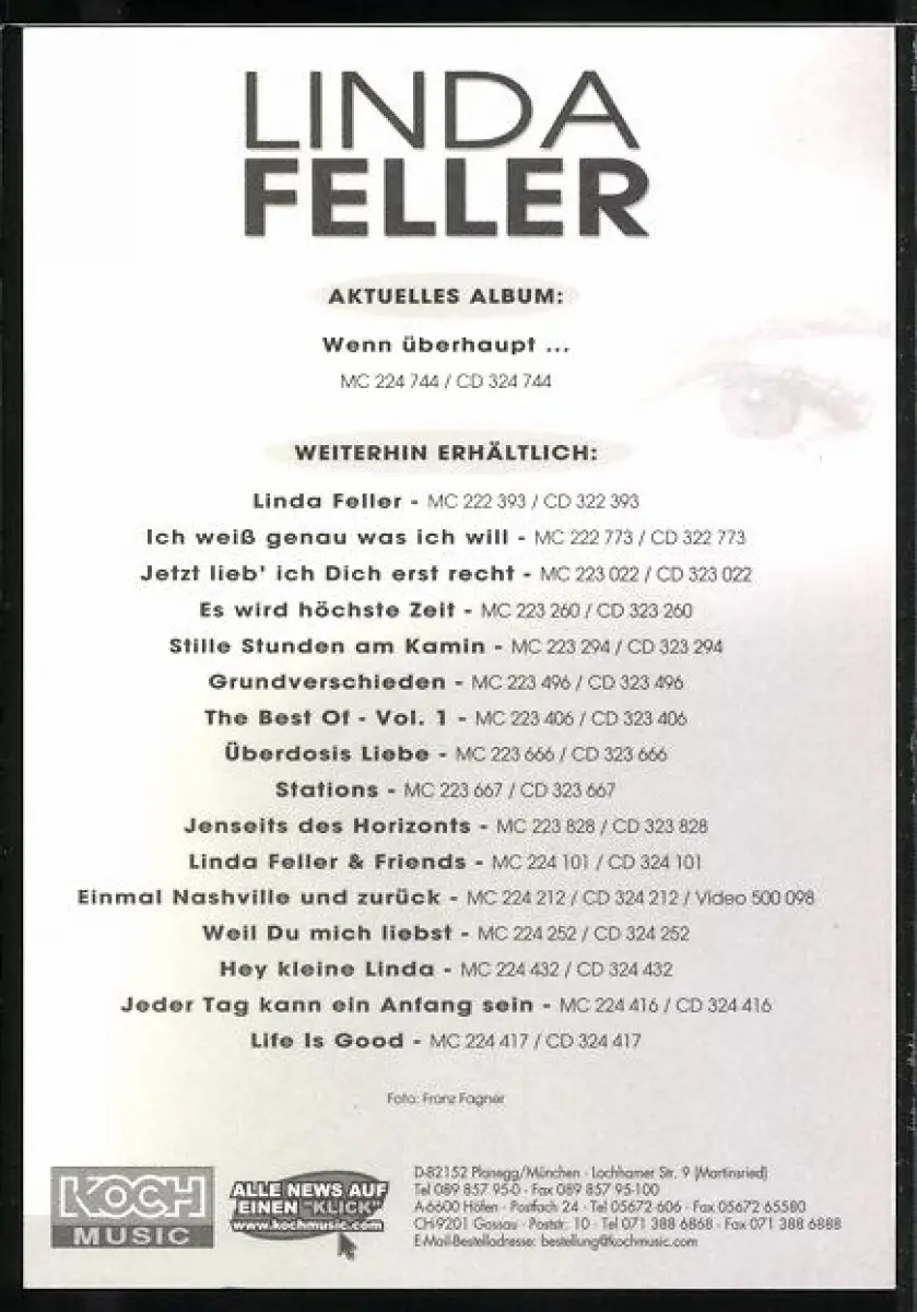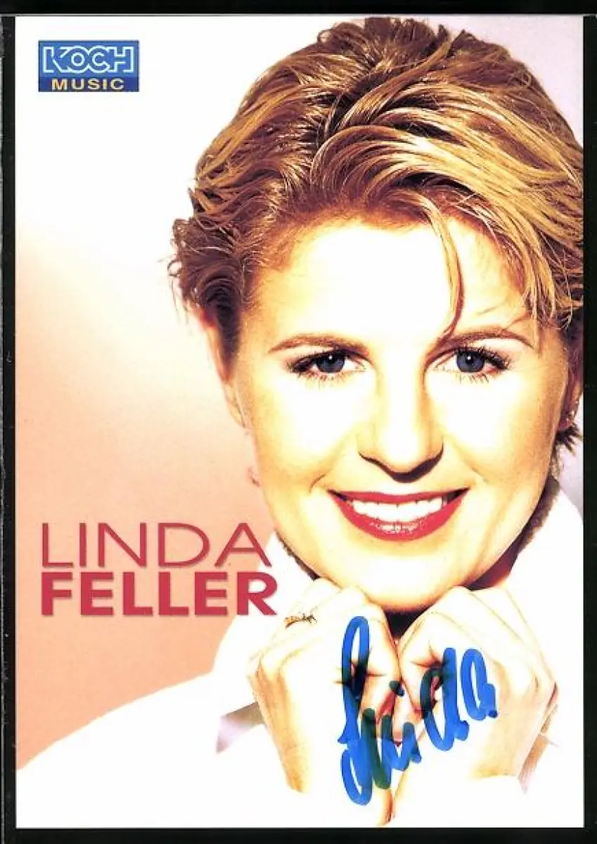 AK Musikerin Linda Feller lächelnd in die Kamera blickend, Autograph