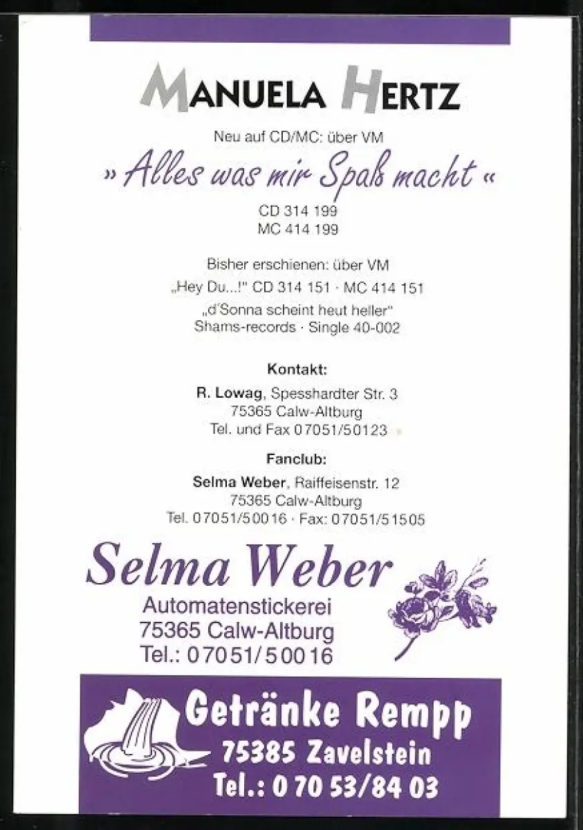 AK Musikerin Manuela Hertz, Portrait, Autograph