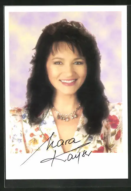 AK Musikerin Mara Kayser mit Halskette in geblümter Bluse, Autograph