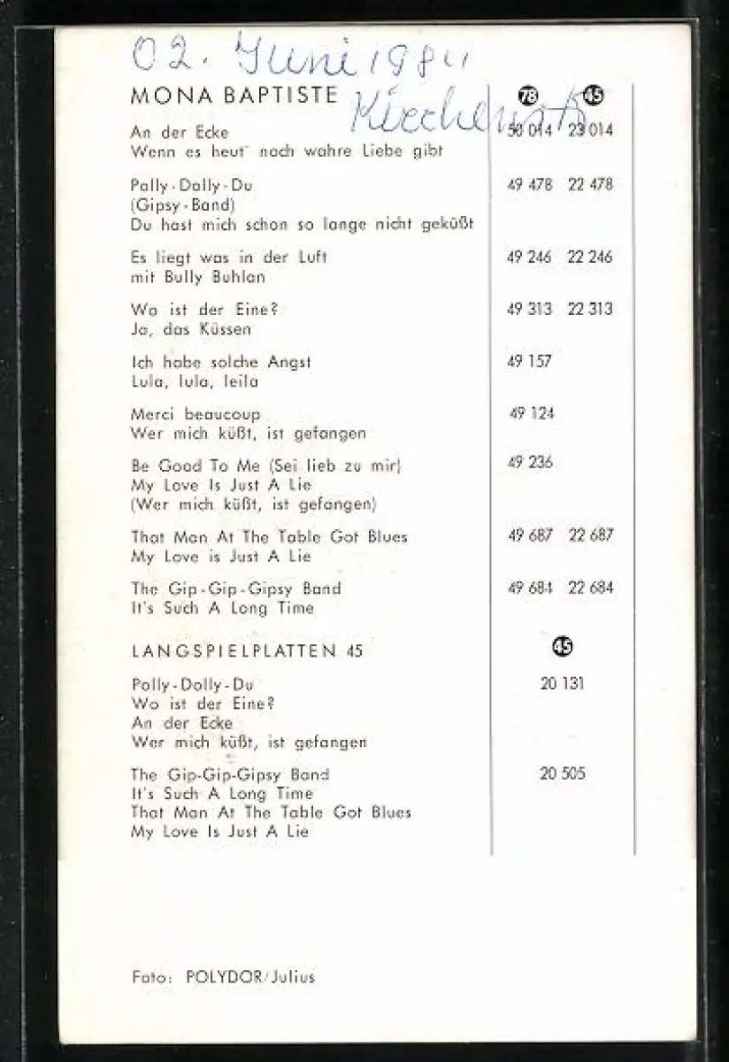 AK Musikerin Mona Baptiste im Profil, Autograph