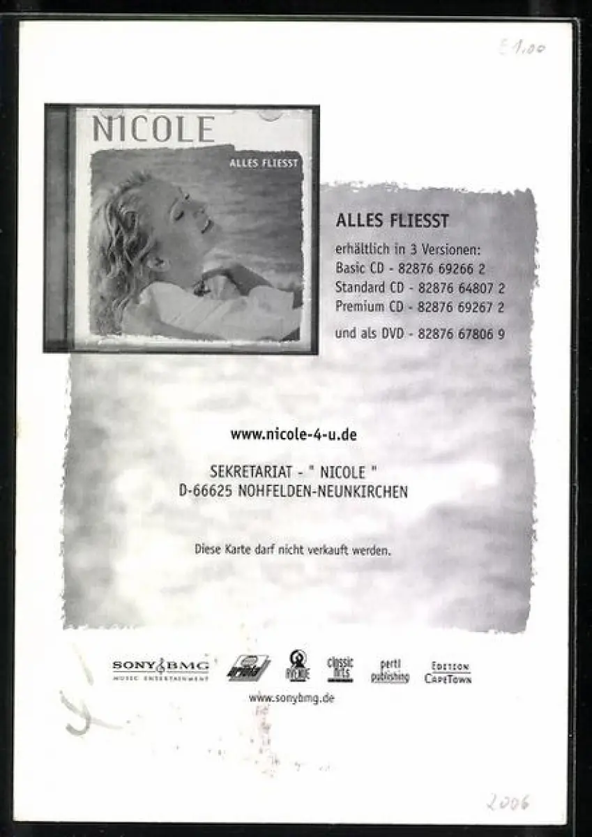 AK Musikerin Nicole in weisser Bluse, Autograph