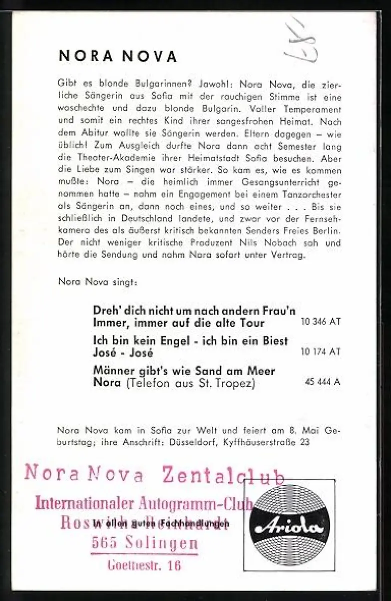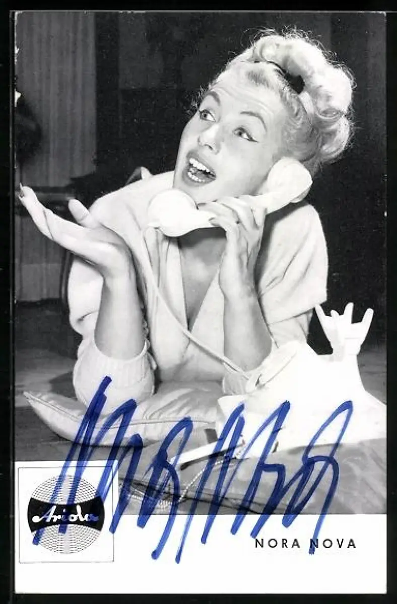 AK Musikerin Nora Nova am Telefon sprechend, Autograph