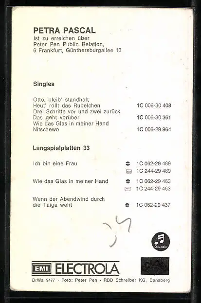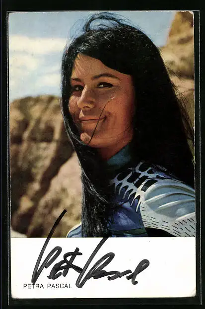 AK Musikerin Petra Pascal in bunter Bluse, Autograph