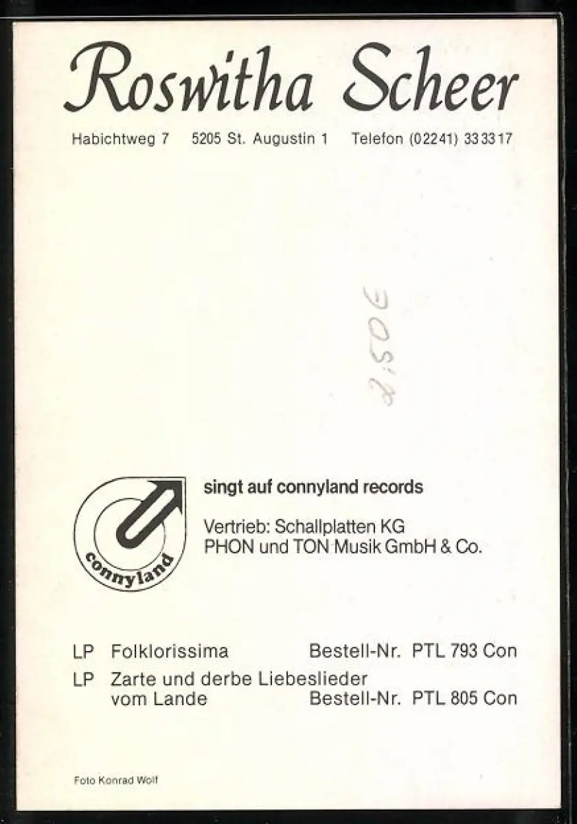 AK Musikerin Roswitha Scheer vor rosanen Blüten, Autograph