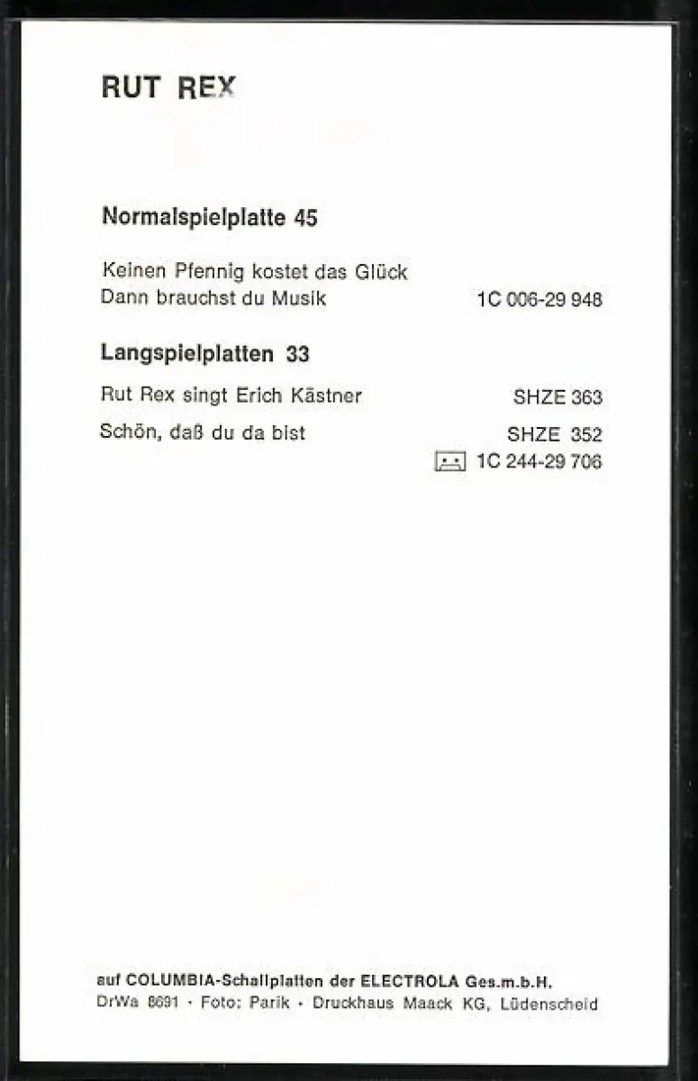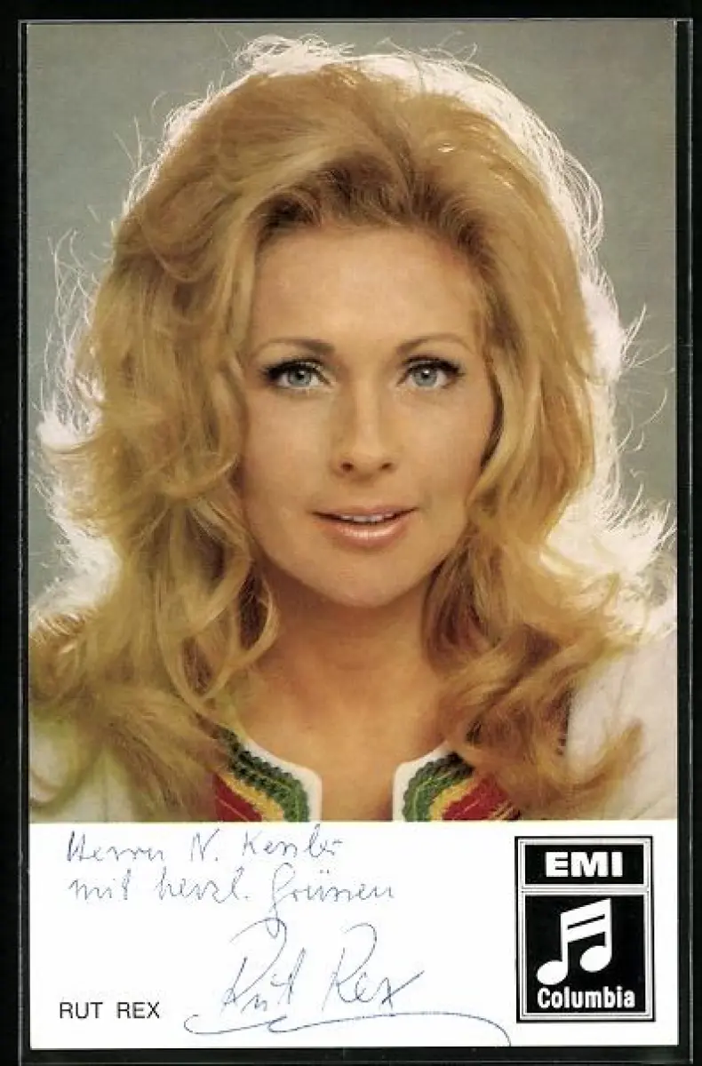 AK Musikerin Rut Rex in die Kamera blickend, Autograph