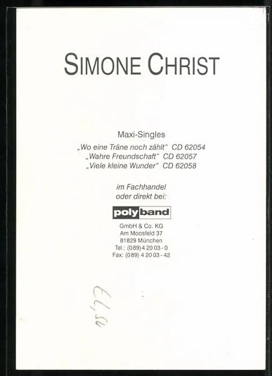 AK Musikerin Simone Christ im Porträt mit Autograph