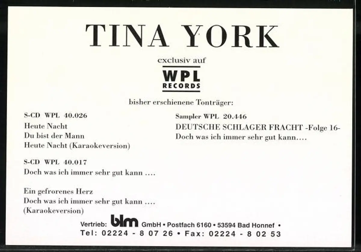 AK Musikerin Tina York vor lilanem Hintergrund, Autograph
