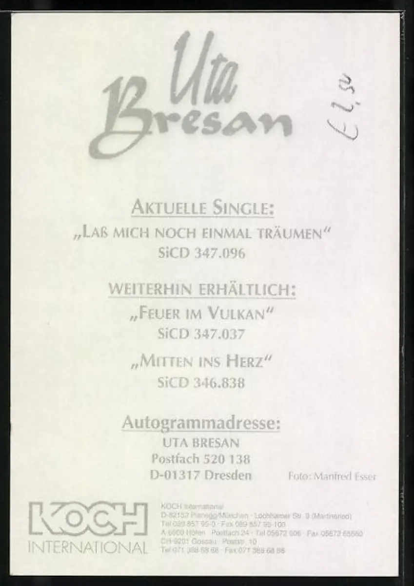 AK Musikerin Uta Bresan lächelnd im Porträt, Autograph