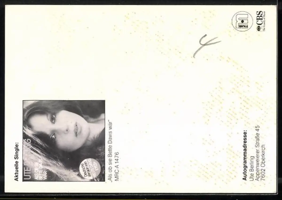 AK Musikerin Ute Berling mit nachdenklichem Blick, Autograph