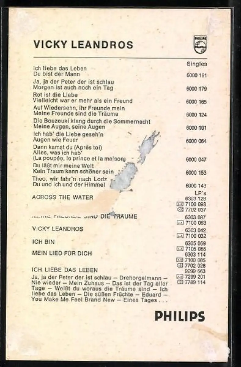 AK Musikerin Vicky Leandros mit roter Bluse, Autograph