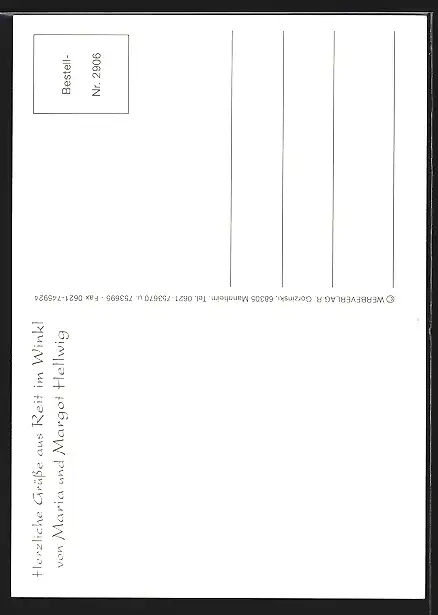Personenbezogene Daten auf der Rückseite der Karte wurden durch blauen Textmarker unkenntlich gemacht. Die blauen Stellen sind auf die Vorderseite durchgeweicht und wirken sich negativ auf das Postkartenfoto aus