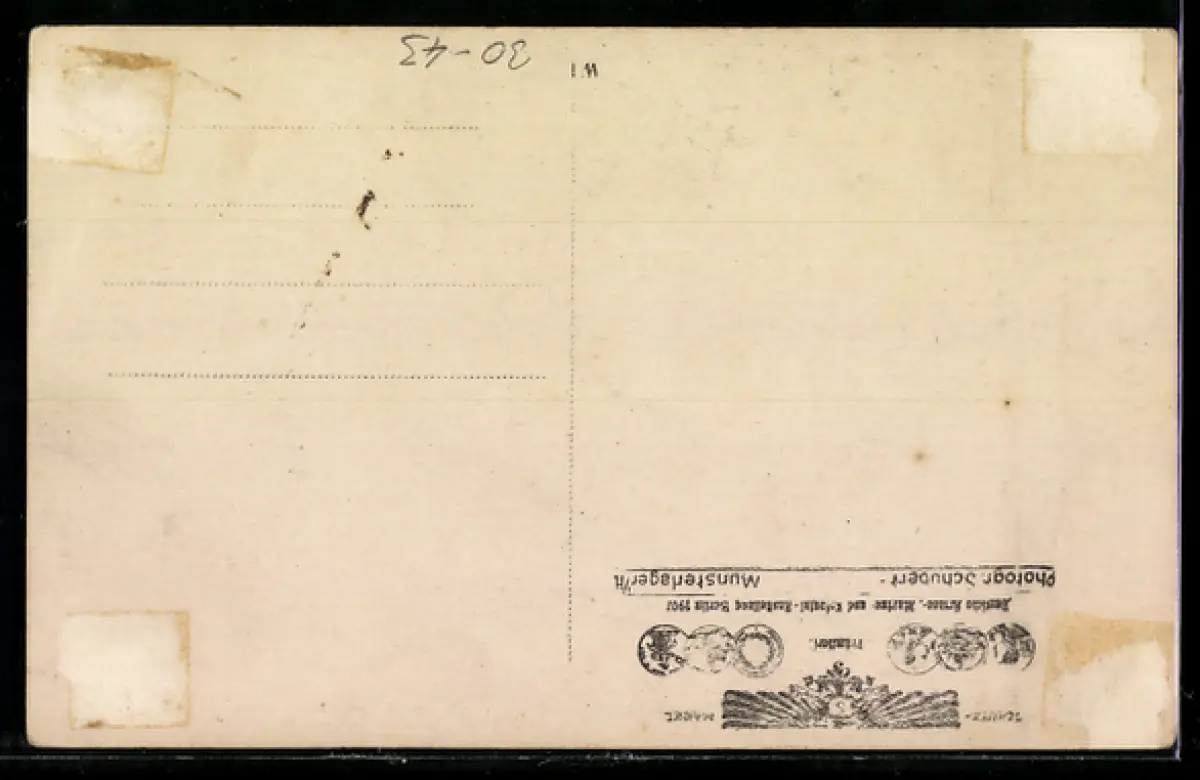 alte Ansichtskarte, ungelaufen, rückseitig Klebe- und Papierreste, rückseitig Oberflächenschaden, guter Zustand
