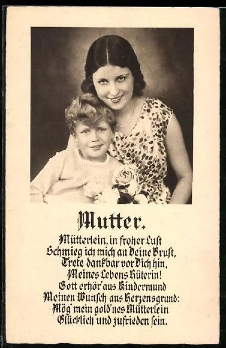 AK Mutter und Sohn mit einem Strauss Rosen zum Muttertag