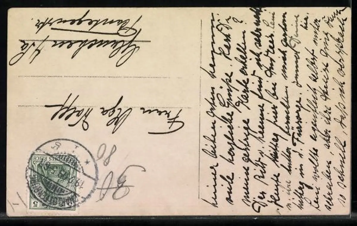 gelaufen 1909, Eckknick unten li., guter Zustand
