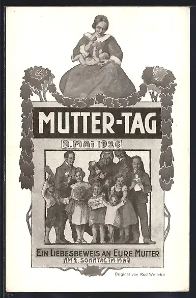 AK Muttertag am 9. Mai 1926, Kinder mit Geschenken