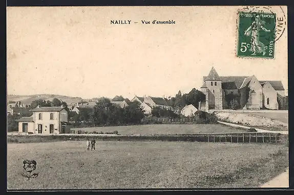 AK Nailly, Vue d`ensemble du village avec église et maisons environnantes