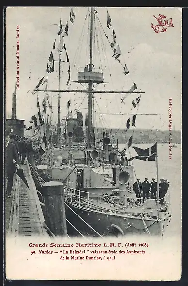 AK Nantes, La Heimdal vaisseau-école des Aspirants de la Marine Danoise, à quai, Août 1908