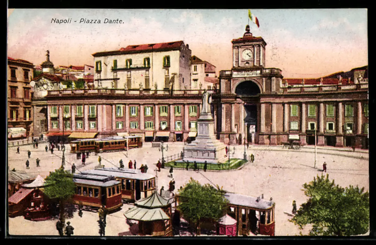 AK Napoli, Piazza Dante, Strassenbahn