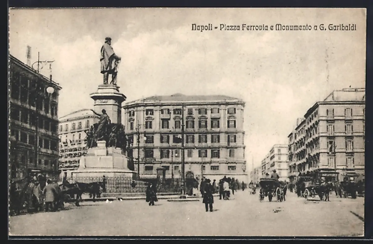 AK Napoli, Piazza Ferrovia e Monumento a G. Garibaldi