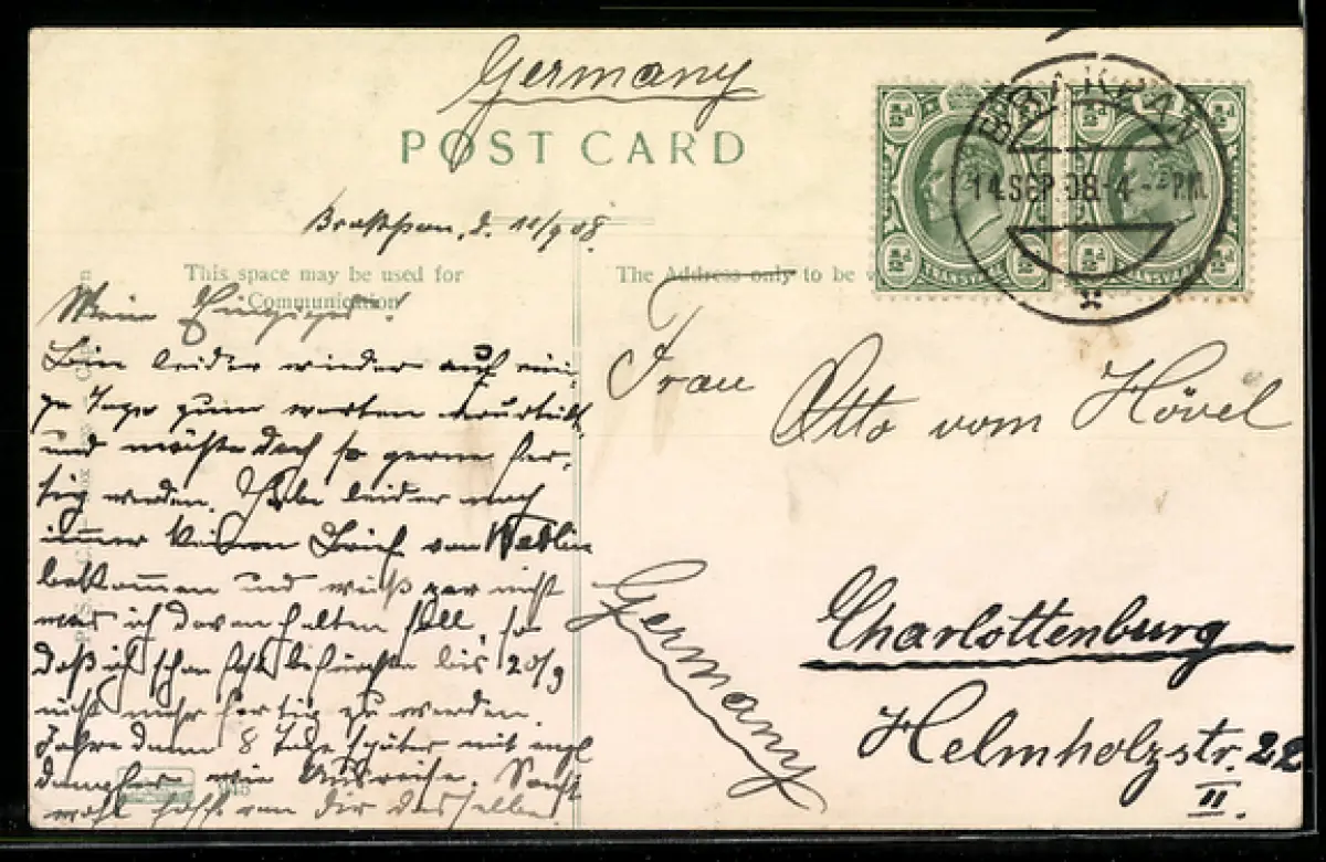 alte Ansichtskarte, gelaufen 1908, Eckknick re. unten, guter Zustand