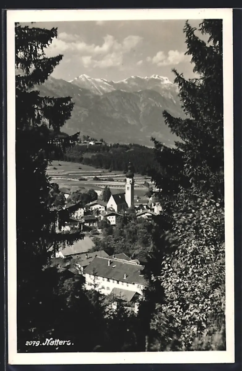 AK Natters, Teilansicht mit Kirche vom Berghang aus