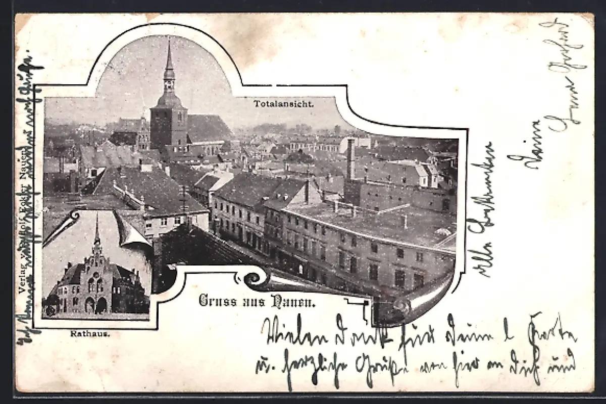 AK Nauen / Havel, Totalansicht, Rathaus