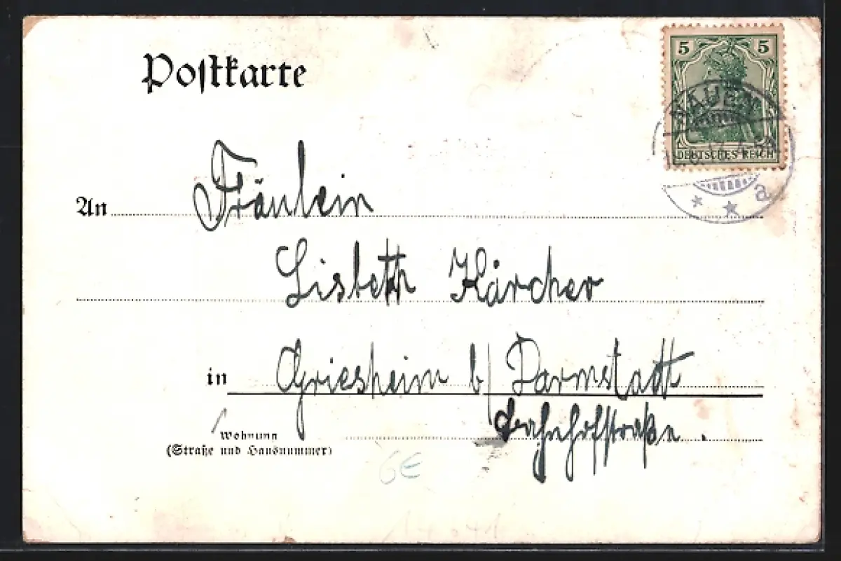 alte Ansichtskarte, gelaufen 1913, Eckknicke oben, minimaler Einriss li. oben, guter Zustand