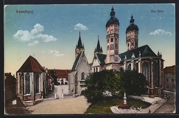 AK Naumburg a. S., Dom mit Denkmal aus der Vogelschau