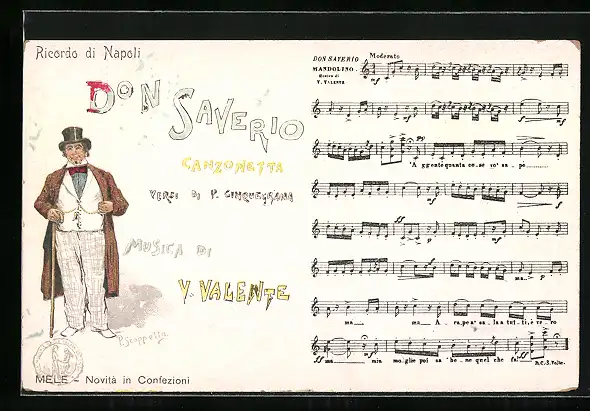 AK Neapel / Napoli, Lied Don Saverio, Herr in vornehmen Kleidern mit Gehstock