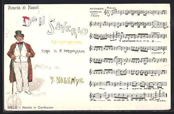 AK Neapel / Napoli, Lied Don Saverio, Herr in vornehmen Kleidern mit Gehstock