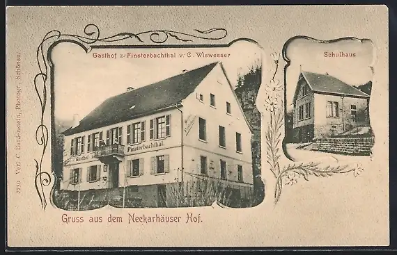 AK Neckarhäuserhof, Gasthof zum Finsterbachthal von C. Wiswesser, Schulhaus