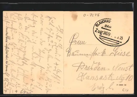 alte Ansichtskarte, gelaufen 1925, Briefmarke entfernt, guter Zustand