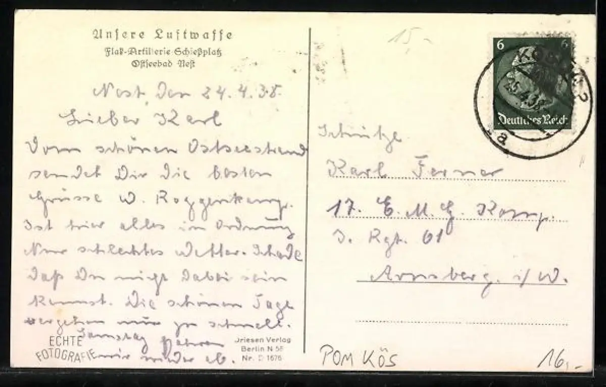 AK Nest, Flak-Artillerie-Schiessplatz, Flugzeug mit über Meer, Am Jamunder See